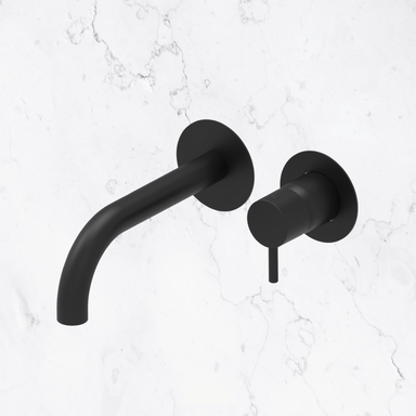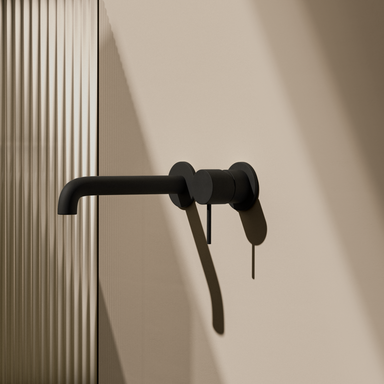De zwarte inbouw wastafelkraan wordt in de muur geplaatst. Een inbouw kraan zorgt voor een rustige uitstraling. Het badmeubel wordt niet verstoor...